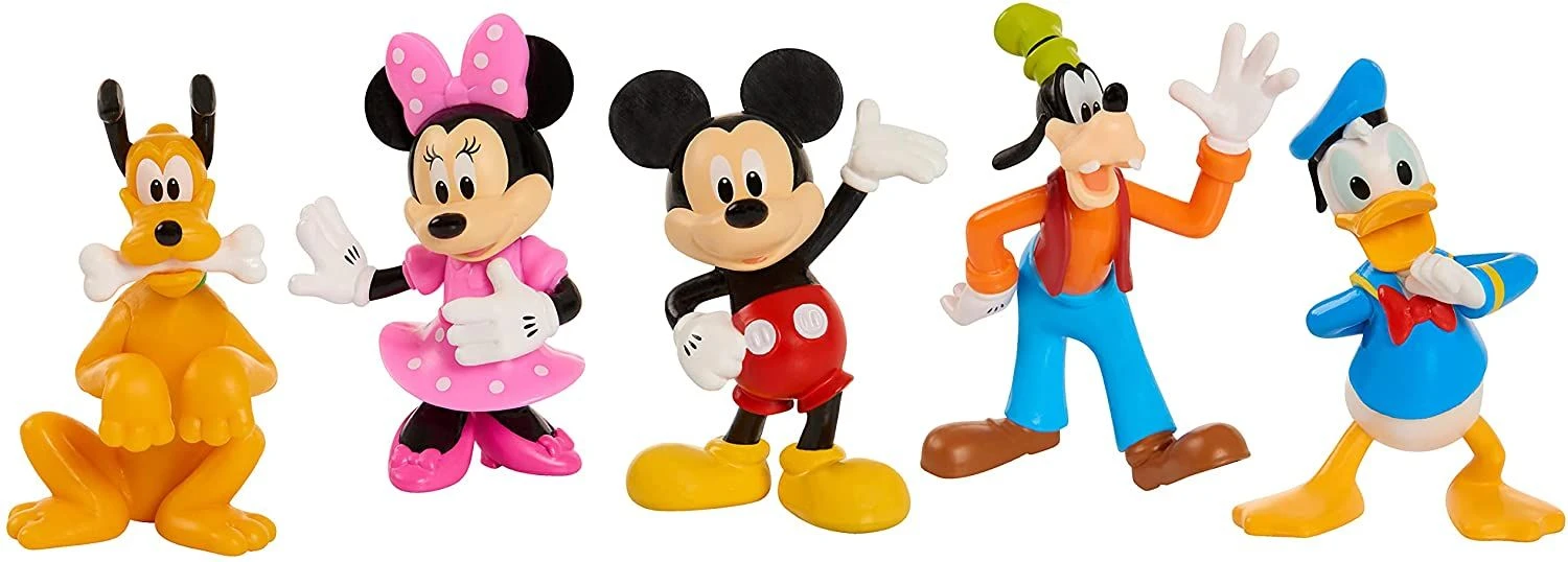 - Timeless five-piece figure set includes: Mickey Mouse, Minnie Mouse, Donald Duck, Goofy, and Pluto.