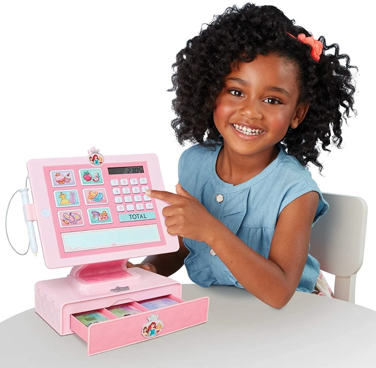 Sleek unique and oh so fun, The Disney Princess style collection combines everyday play with a contemporary Disney Princess flair. This collection of real-life inspired toys is meant for the modern girl with big goals and great style. She’s a Go-Getter, a globe-trotter, a fashionista, and most of all, a girl who sets her own trends! Get ready to take on the world with the Disney Princess style collection! Time to check out with the shop ‘N play cash register! With its sleek design, lots of play pieces, and cash register sounds and phrases, It elevates any shopping experience from drab to fab! Ring up your items with a real working calculator, and swipe your credit card to charge it! Then dip your stylus in water and sign your name on the water-activated signature pad! Shopping never looked so chic!