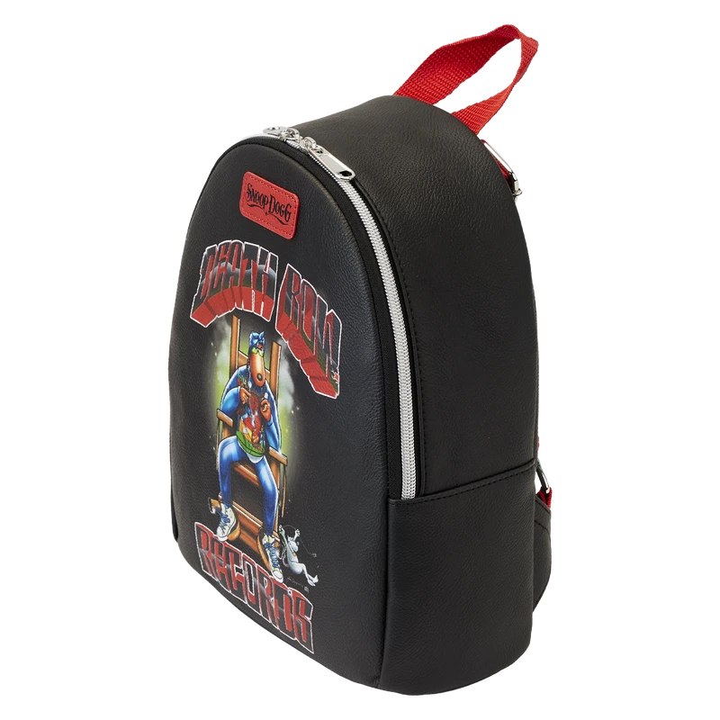 The Funko Snoop Dogg Death Row Records Mini Backpack is made of vegan leather (polyurethane). Bag has adjustable shoulder straps, shiny silver hardware, and features printed details.