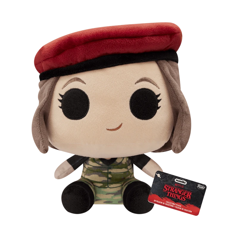 Hawkins, Indiana is harboring dangerous and supernatural secrets. Bring home the happenings, characters, and breakthrough moments of Stranger Things with your own plush Robin wearing her hunter outfit. Collectible plush is approximately 7-inches tall.