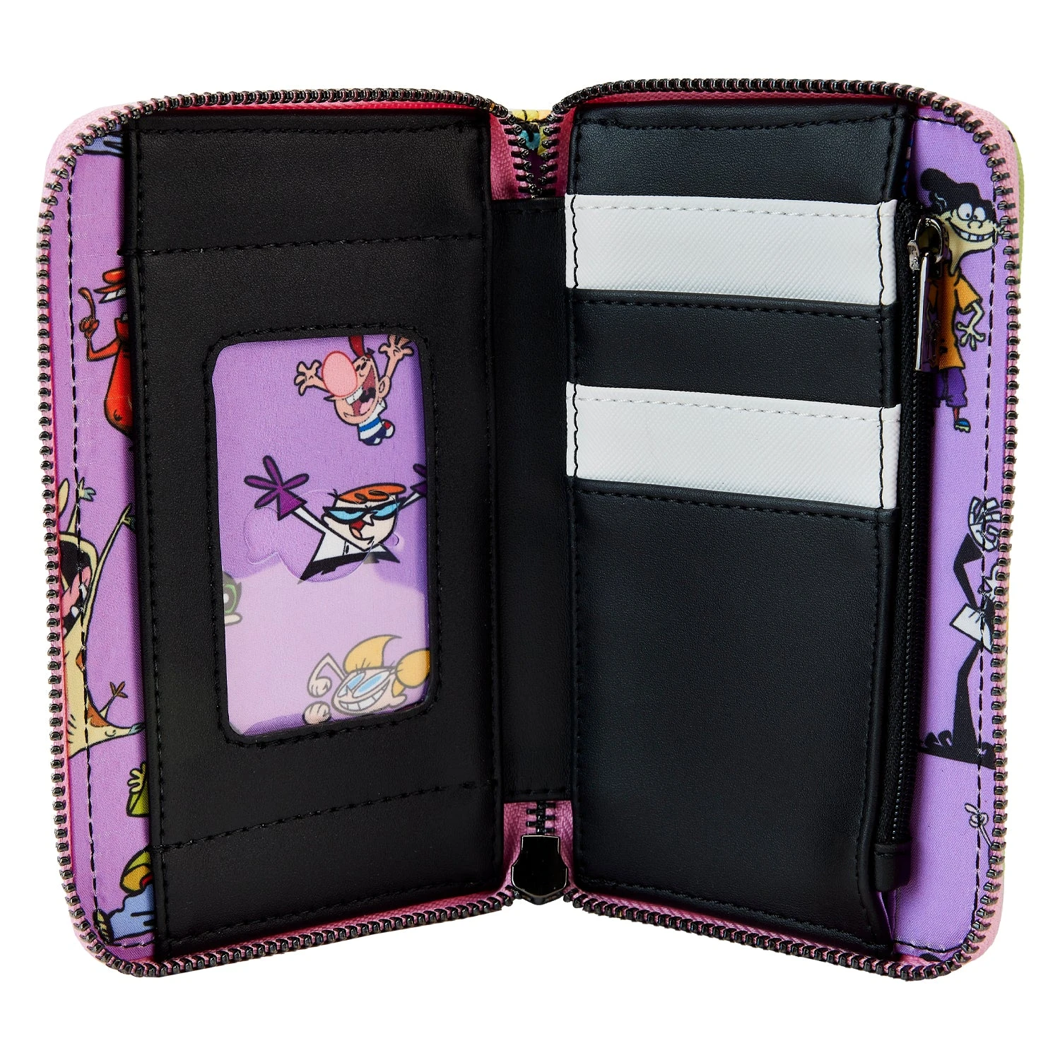 This is Cartoon Network! Your favorite after-school pals are jumping off the screen to join the Loungefly Cartoon Network Retro Collage Zip Around Wallet. In this color-blocked design, you’ll find beloved characters from shows such as The Powerpuff Girls, Ed, Edd, n Eddy, Dexter’s Laboratory, Foster’s Home for Imaginary Friends, , Cow and Chicken, Johnny Bravo, and Courage the Cowardly Dog. With four slots for holding cards and a clear slot to hold ID, this trendy throwback will keep your belongings safe on any adventure.