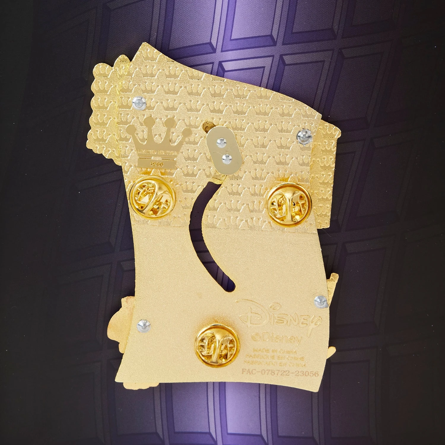 Enamel pin details include a sliding mechanism that enables movement. The shiny gold-colored metal backing has the signature Funko crown debossing as well as the embossed crown on the back, noting the limited-edition piece count.