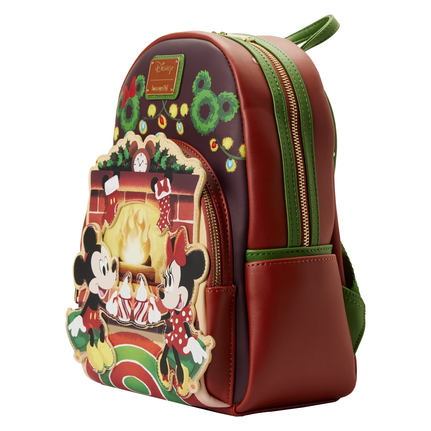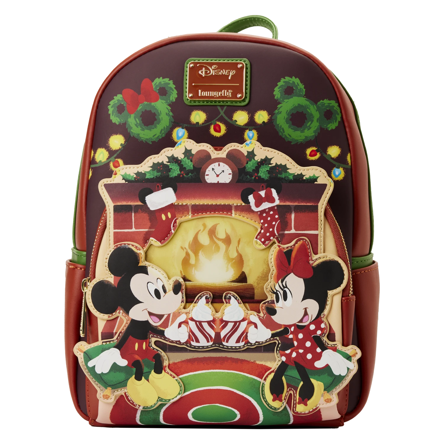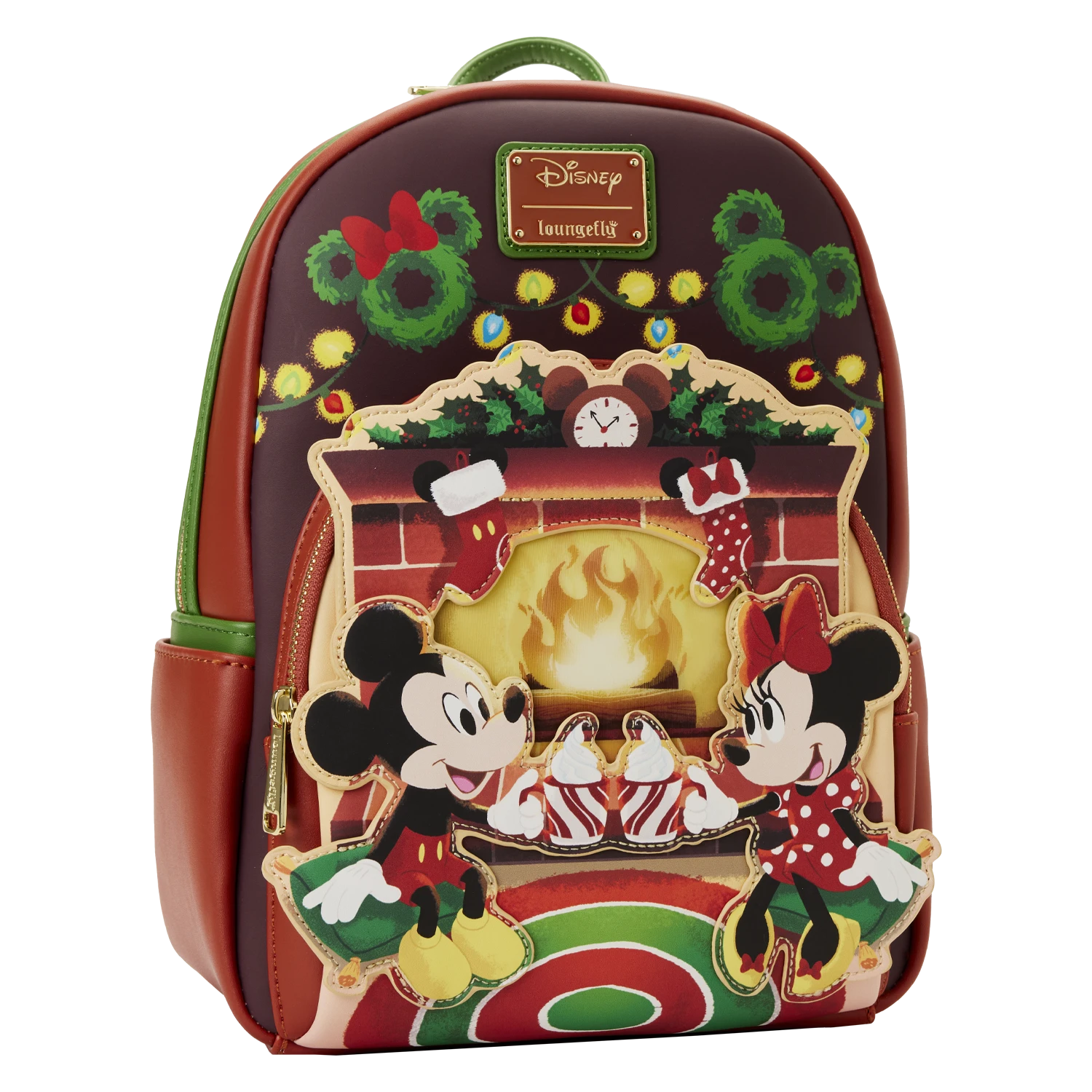 Pour a cup of hot cocoa and join Mickey Mouse and Minnie Mouse by the fire. Celebrate the warmth of the season with this Loungefly Disney Mickey Mouse and Minnie Mouse Fireplace with Cocoa Mini Backpack. Lenticular details of the fireplace reveal a warm and toasty fire that’s just perfect for Mickey and Minnie Mouse, who raise their whip-cream-filled hot cocoa cups in a toast. Holly decorates the mantel of the fireplace, and stockings await Santa’s arrival. Applique details bring the fireplace and the characters to life—and there’s a zipped compartment near the fireplace for storing extra holiday necessities. On the back, Pluto has a wish list for Santa. It’s the perfect accessory for dashing off to holiday-themed occasions—or for bringing a merry and bright spirit of the season to everyday outings.