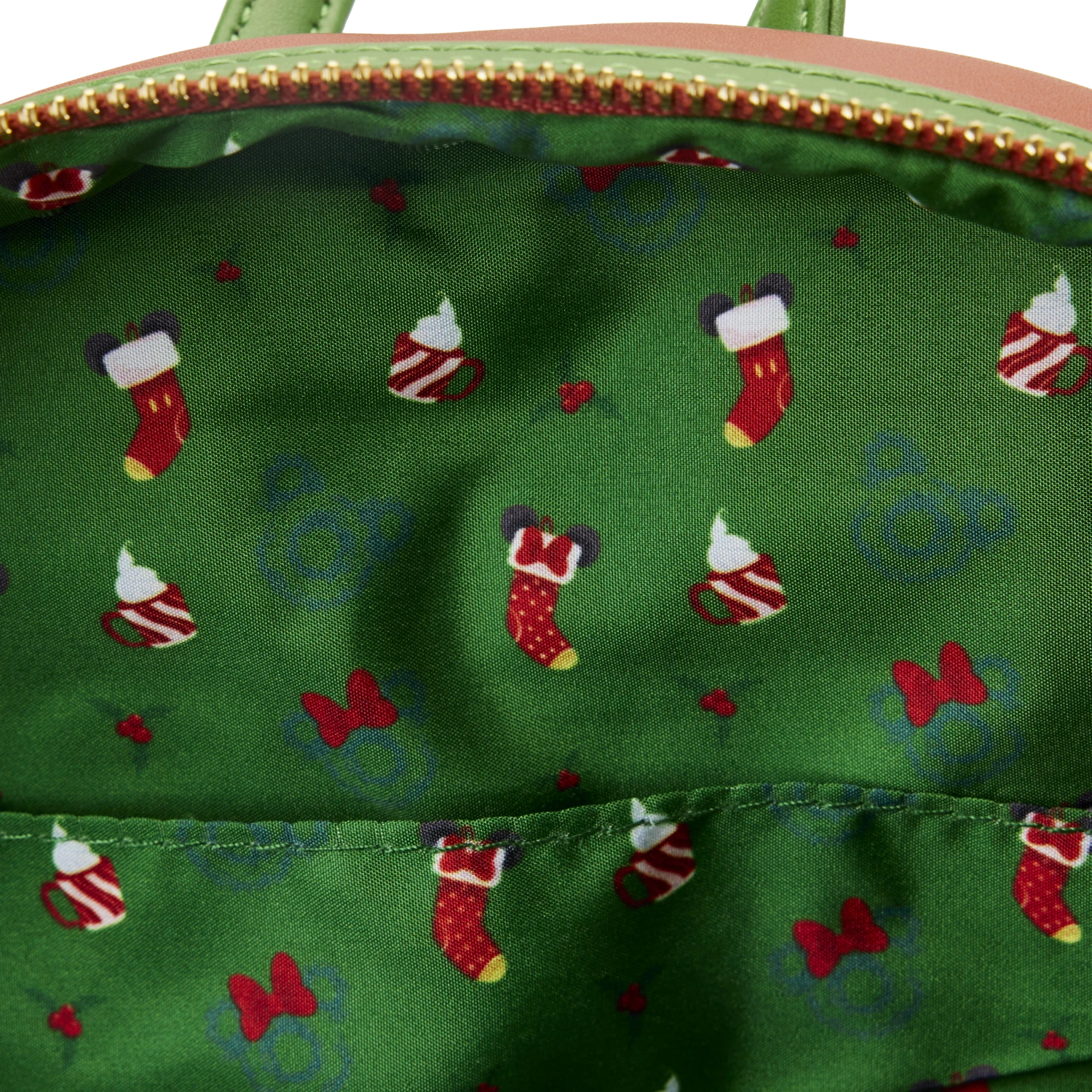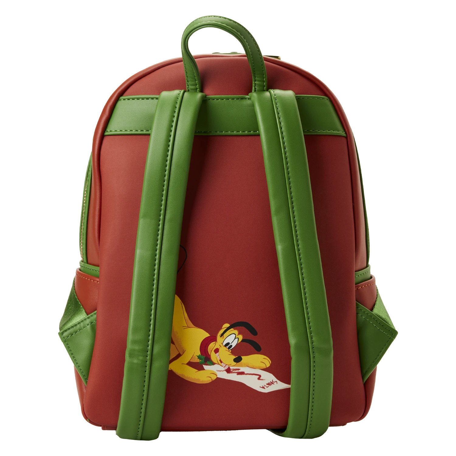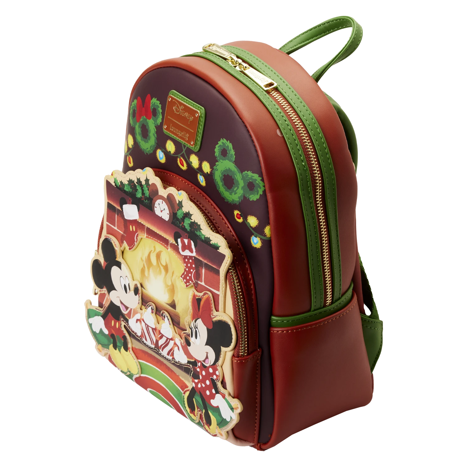 Pour a cup of hot cocoa and join Mickey Mouse and Minnie Mouse by the fire. Celebrate the warmth of the season with this Loungefly Disney Mickey Mouse and Minnie Mouse Fireplace with Cocoa Mini Backpack. Lenticular details of the fireplace reveal a warm and toasty fire that’s just perfect for Mickey and Minnie Mouse, who raise their whip-cream-filled hot cocoa cups in a toast. Holly decorates the mantel of the fireplace, and stockings await Santa’s arrival. Applique details bring the fireplace and the characters to life—and there’s a zipped compartment near the fireplace for storing extra holiday necessities. On the back, Pluto has a wish list for Santa. It’s the perfect accessory for dashing off to holiday-themed occasions—or for bringing a merry and bright spirit of the season to everyday outings.