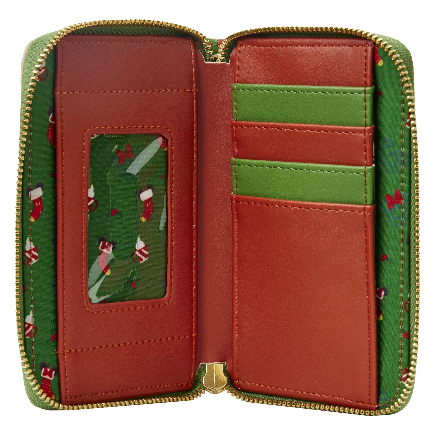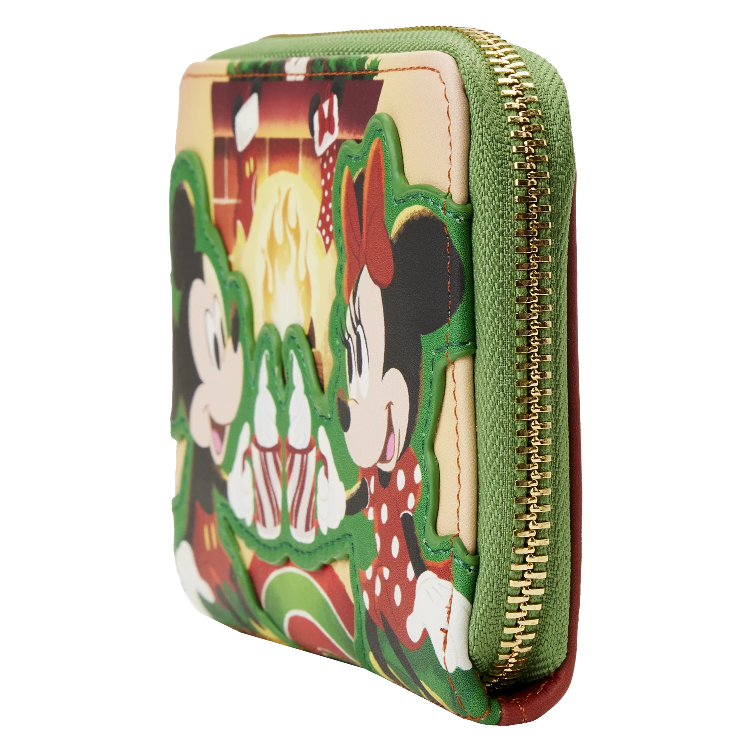 Pour a cup of hot cocoa and join Mickey Mouse and Minnie Mouse by the fire. Celebrate the warmth of the season with this Loungefly Disney Mickey Mouse and Minnie Mouse Fireplace with Cocoa Zip Around Wallet. The fireplace reveals a warm and toasty fire that’s just perfect for Mickey and Minnie Mouse, who raise their whip-cream-filled hot cocoa cups in a toast. Holly decorates the mantel of the fireplace, and stockings await Santa’s arrival. Applique details bring the characters to life. On the back, Pluto has a wish list for Santa. Inside, you’ll find 4 slots for holding cards and 1 clear slot for your ID. It’s the perfect accessory for dashing off to holiday-themed occasions—or for bringing a merry and bright spirit of the season to everyday outings.