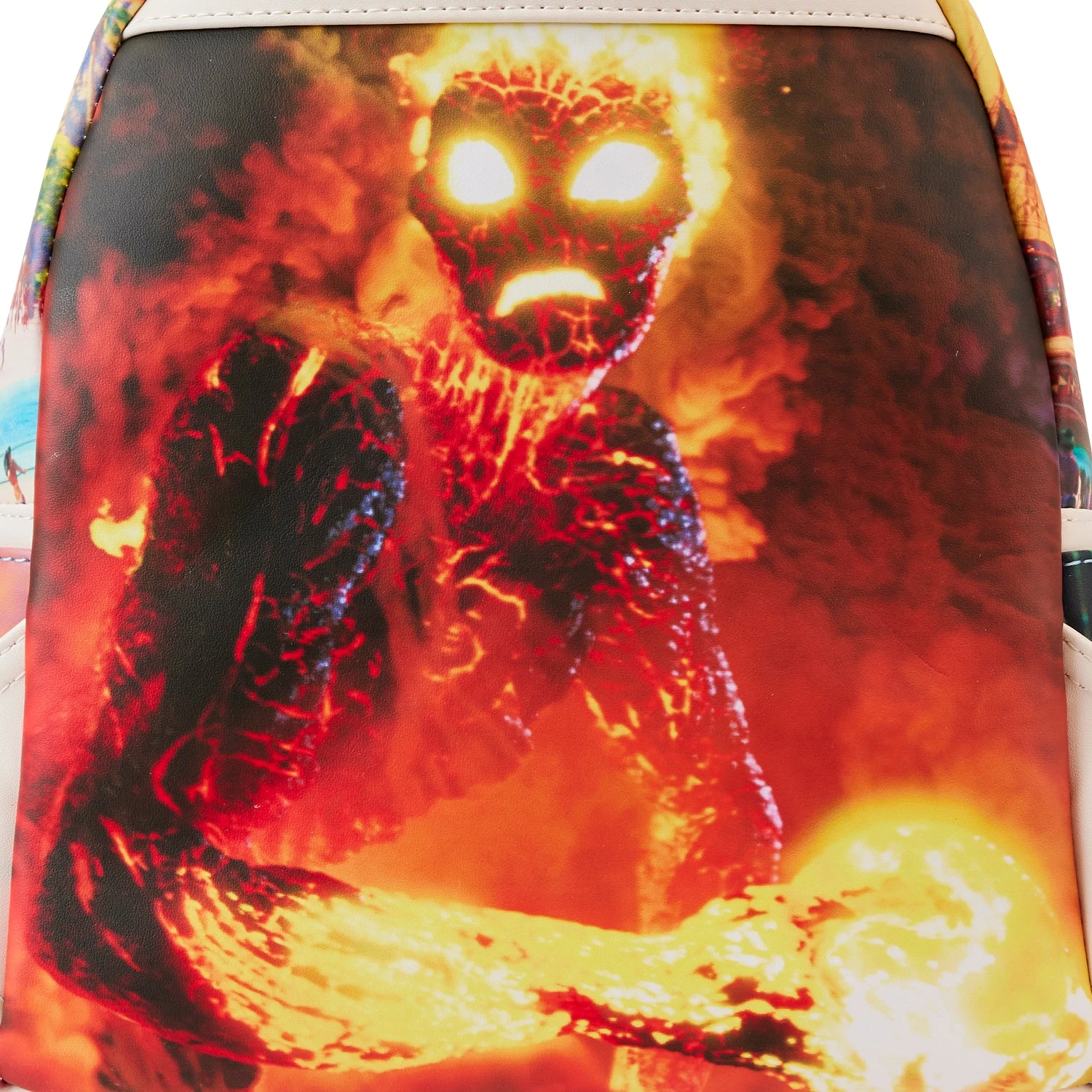 Journey beyond the reef in style with our Loungefly Disney Moana Princess Scene Series Mini Backpack. Original, hand-drawn art brings each scene from this movie into focus. At the top, you’ll find Moana, amid brilliant blue waves, looking down upon the Kakamora on the zipped front pocket. On the bottom of the zipped compartment, Te Fiti appears in lush, green detail. The side pocket scenes include Pua and Hei Hei, as well as Moana and Maui. On the back, fiery Te Kā takes center stage. Pua even makes an encore appearance as an enamel zipper charm! Wherever you go, make waves with this gorgeous backpack.