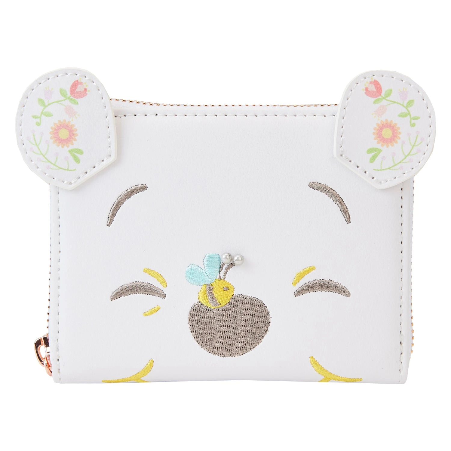 Create a buzz in the Hundred Acre Wood with the sweetest of accessories! Take along our Loungefly Disney Winnie the Pooh Cosplay Folk Floral Zip-Around Wallet and stop to enjoy the flowers. On the front, Winnie the Pooh delights in a visit from a bee that has landed on his nose. Pooh’s adorable face comes to life in embroidery—and the bee has beaded details for the antennae and eyes. Embroidered floral elements decorate Pooh’s applique ears, which stick up at the top. On the back, the floral elements repeat, with an encore appearance from the bee. Inside, you’ll find 4 slots for holding cards and 1 clear slot for displaying your ID. A die-cut shape of a honeypot adds a touch of fun. Meet up with Pooh and his friends for an adventure, or simply stroll through your neck of the woods in fresh pop-culture style.