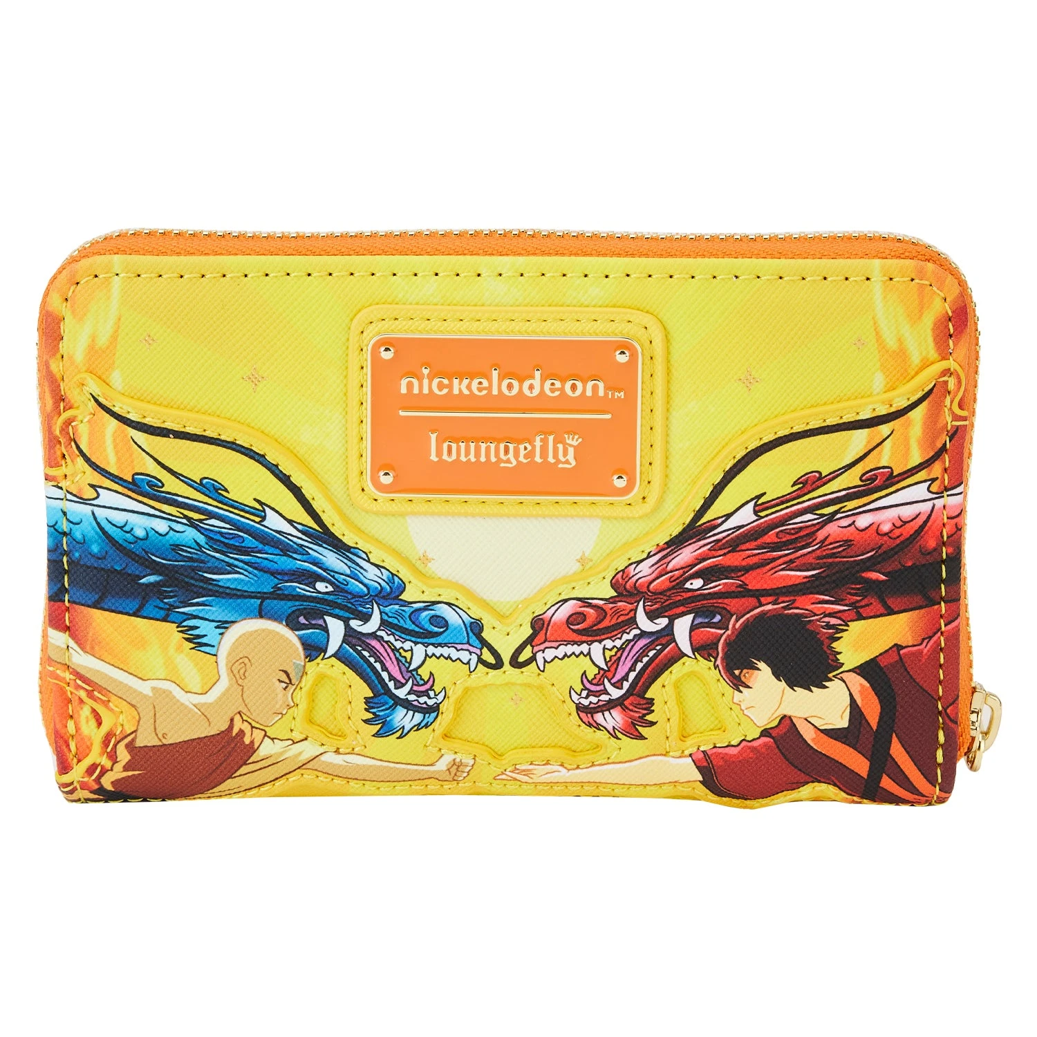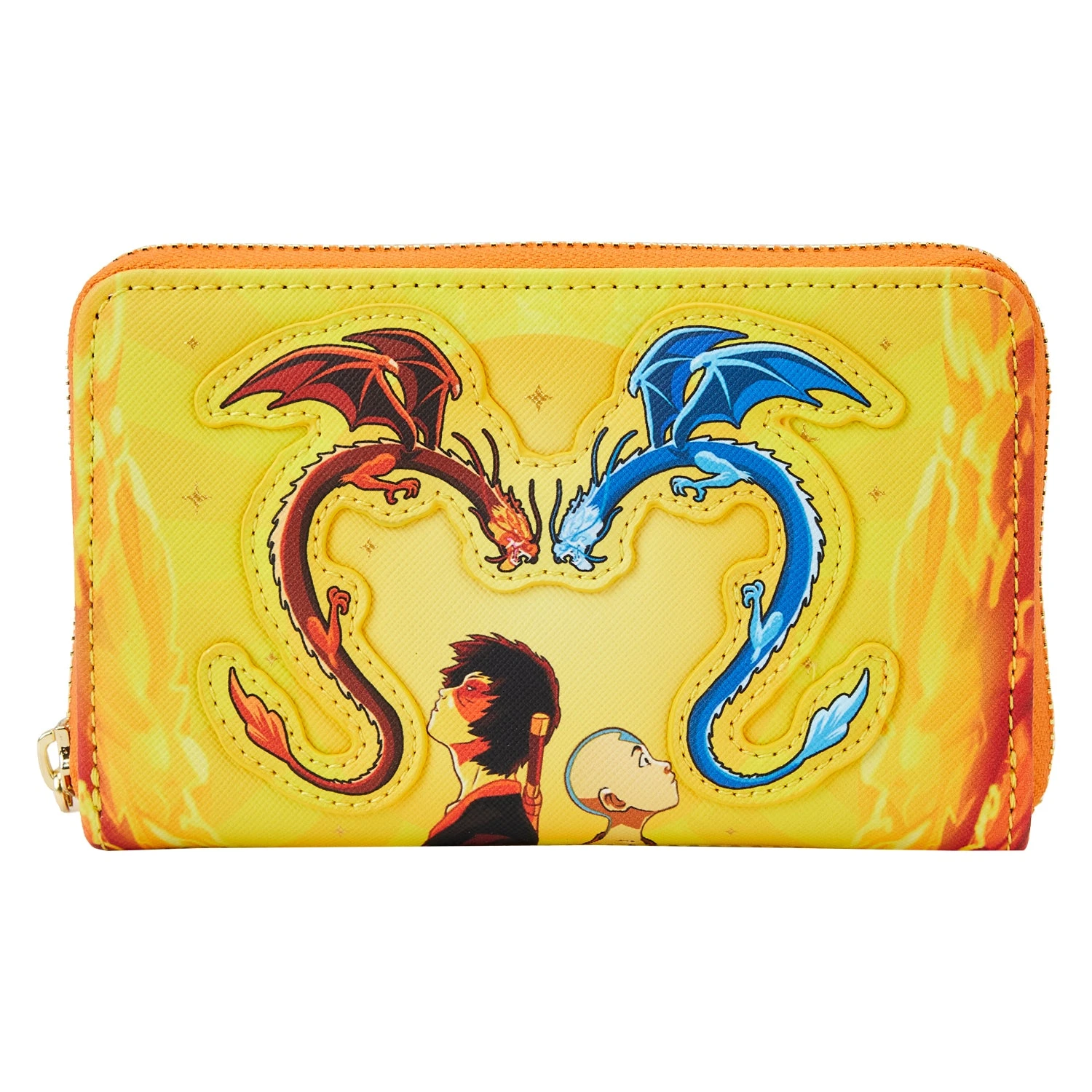Ready to face the Masters? Put your firebending skills to the test with the Loungefly Avatar: The Last Airbender Fire Dance Zip Around Wallet. On the front, Zuko and Aang wait to receive knowledge from red and blue dragons as gold foil stars appear around them. On the back, Aang and Zuko join together in the Dancing Dragon form. With four slots for holding cards and a clear slot to hold ID, this accessory will keep your belongings safe as you learn the ancient ways of firebending.