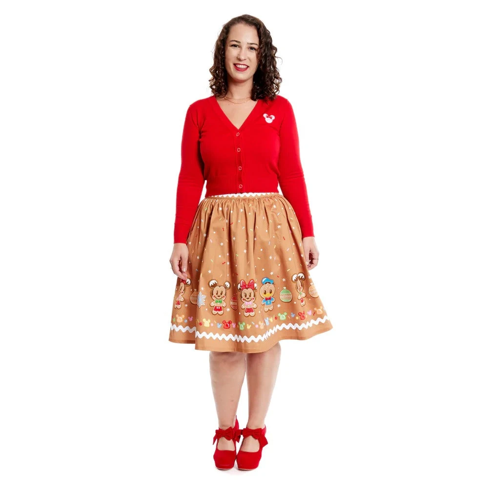 Cook up sweet holiday memories with this Stitch Shoppe Disney Holiday Gingerbread Friends Sandy Skirt. Sugar plum dreams are just a twirl of a hem away when you wear this festive skirt. Icing trim decorates the waistline and pleated hem of this gingerbread-colored garment. Sprinkles and other goodies form a delightful pattern that leads to a special treat blend, folded into the hem, including mouse-ear-shaped gumdrops in a variety of colors, lollipops, icing snowflakes and ornaments, and cherished Disney pals in gingerbread cookie form. You’ll be able to spot the following Disney favorites: Mickey Mouse, Minnie Mouse, Donald Duck, and Daisy Duck. Treat yourself to a festive outing, decked out in holiday style. Pair this skirt with a cute sweater or blouse to dress it up or down any which way you wish—and whatever the weather may be.