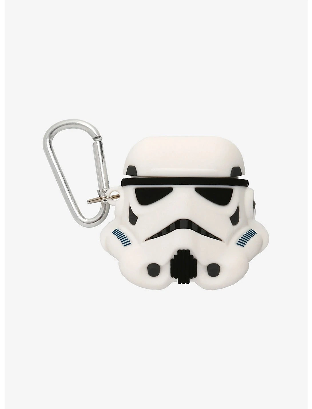 Keep your earbuds protected by the Galactic Empire with this silicone case. Features a figural stormtrooper helmet design with an attached metal carabiner clip.
